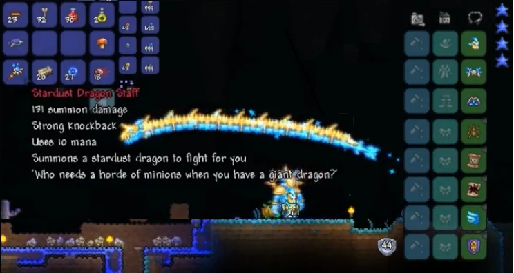 El báculo de dragón de polvo estelar es un arma de invocación del modo difícil creado con fragmentos de polvo estelar que invoca a un dragón de polvo de estrellas para que ataque a los monstruos cercanos.