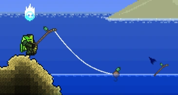 Utilizando la caña de pescar.