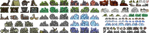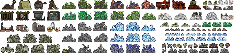 En la mayoría de los biomas y de las capas, aparecen aleatoriamente objetos del ambiente en el mundo. Estos son objetos naturales que varían según la capa en la que estén y pueden destruirse con un pico.