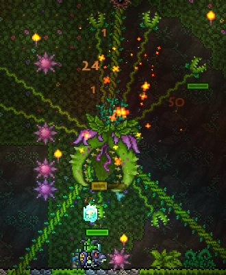 Plantera es un jefe del modo difícil. Sólo se puede invocar después de haber matado a los 3 jefes mecánicos (el Destructor, los Gemelos y esqueletrón mayor).