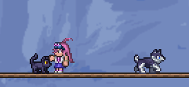- Le nom « Shino » est une référence au YouTuber et beta testeur de Terraria « Khaios », comme le nom de son shiba est Shino.[1]