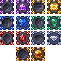 - Le porte-gemme vient d'une suggestion de Master Geass, un utilisateur du forum officiel de Terraria.