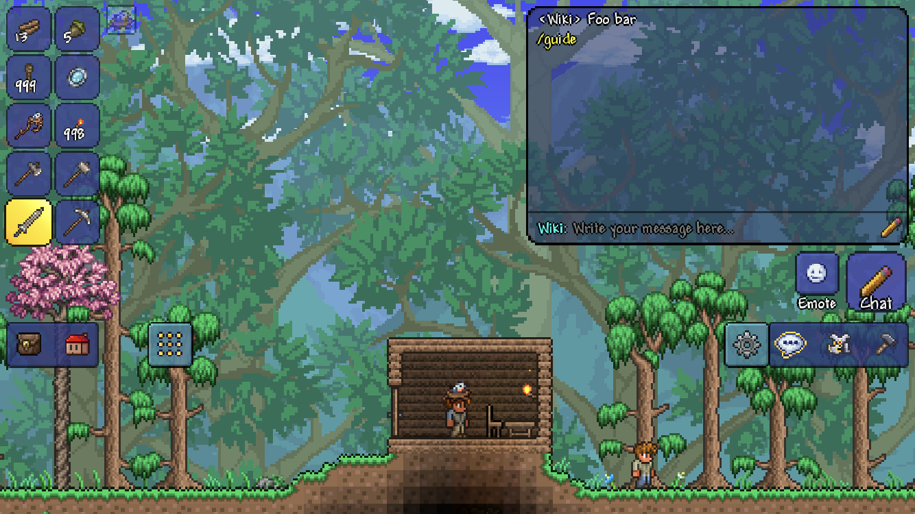 | Interact | Open a door or chest, activate switch, talk to NPC, edit a sign/tombstone, etc. | |