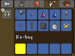 . When an item is sold to an NPC, that item goes to the Re-Buy slots, a section of 5 slots where items sold recently can be rebought. Unlike shops in the