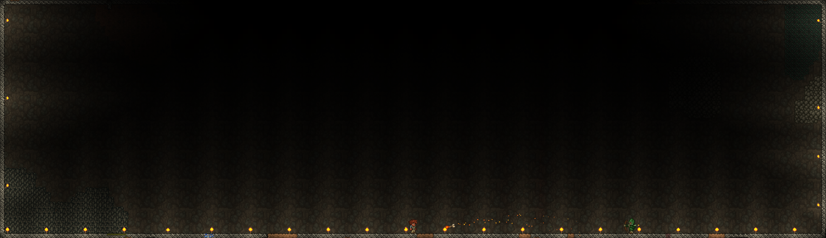A 168x47 tiles area made for farming Caverns enemies. Every tile of 47 tiles below the flat surface is covered with player made walls, in order to focus all spawns in this area.