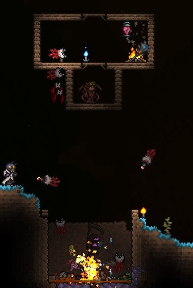 The statue farm in action during a Blood Moon. 15 or so Bunny Hoods far outearn the rest of the event in pre-Hardmode.