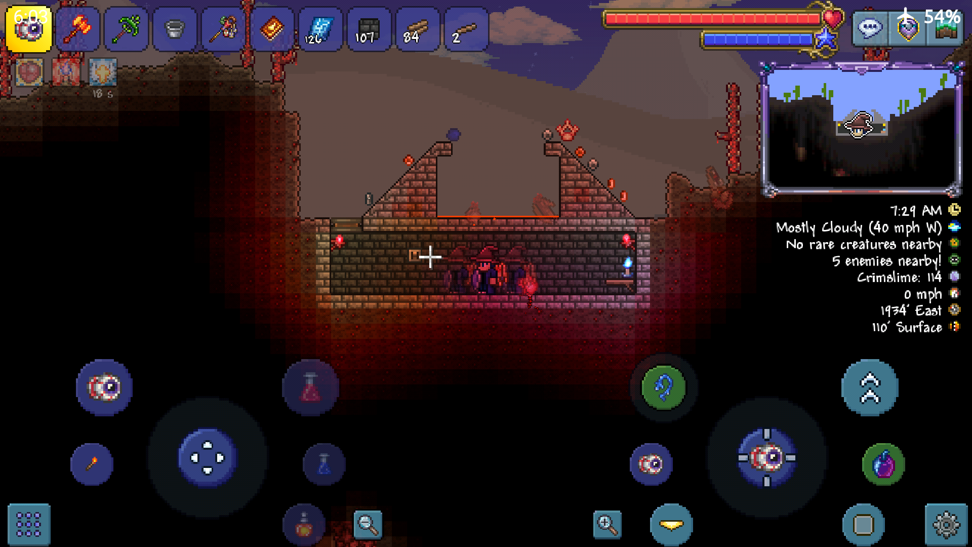 - After obtaining all of the important Blood Moon loots (such as Money Trough, Shark Tooth Necklace, Bloody Tear, and Blood Moon fishing loots), an effective way to spend additional Blood Moons is Surface Corruption/Crimson enemy farming. Due to the greatly enhanced Surface spawn rate, you can obtain a large amount of Rotten Chunks/Vertebras, which are used to craft Boss-summoning items, namely Worm Food(Eater of Worlds)/Bloody Spine(Brain of Cthulhu) and Mechanical Worm(The Destroyer, in Hardmode). Note that repeatedly killing Eater of Worlds/Brain of Cthulhu and selling Demonite/Crimtane ores is one of the best ways to make money pre-Hardmode. Rotten Chunks/Vertebras can also be used to craft Battle Potion for more efficient enemy farming later on.