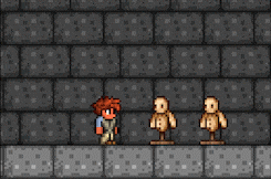 Fiery Greatsword (Before Volcano) attacking Target Dummies. Notice its ability to reach two at the same time.