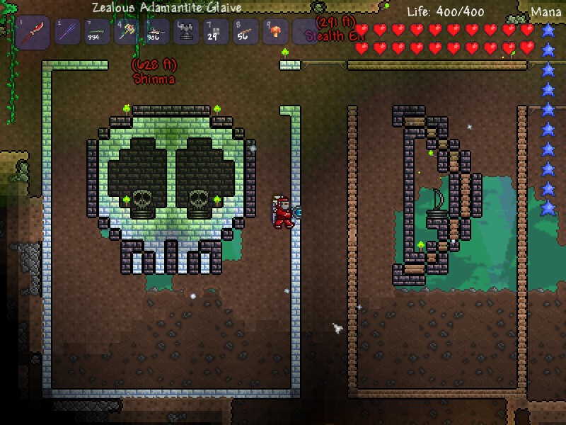 同时支持单人模式和多人模式。除了英语,游戏内语言还可以设置为德语、意大利语、法语、西班牙语、俄语、简体中文、巴西葡萄牙语、和波兰语。游戏玩法与著名的《我的世界(Minecraft)》有若干相似之处,部分受其启发。[2]但是,也有大量不同之处,比如它那些 Boss 和事件。